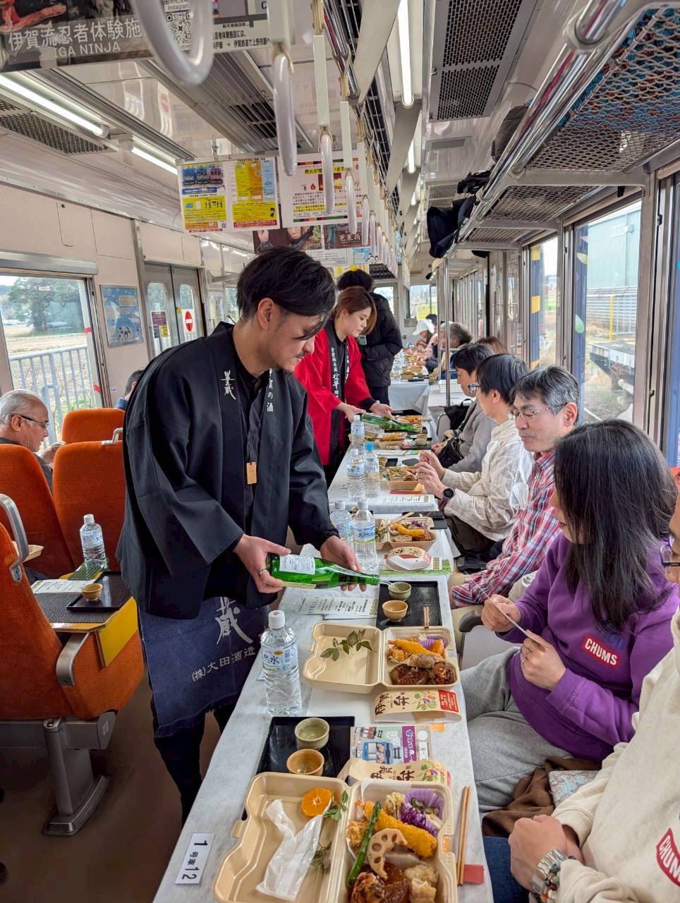 こちらは『利き酒とれいん』とは、がらっと車内の雰囲気が変わり、テーブルには「伊賀焼おちょこ」と「おつまみ」が並べられ、8種類の”伊賀の銘酒”を堪能いただきました!