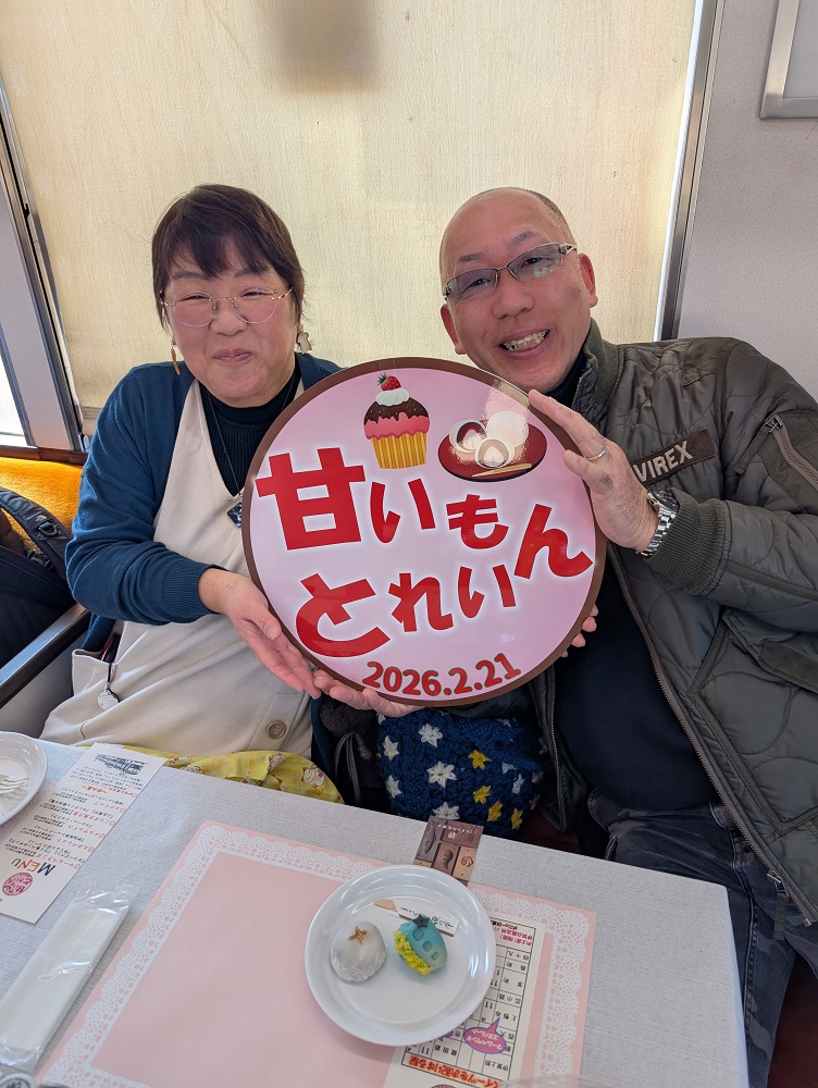 ご参加のお客様は車窓を楽しみながら、”甘い香り”いっぱいの車内で色々な”甘いもん”を味わっておられました。