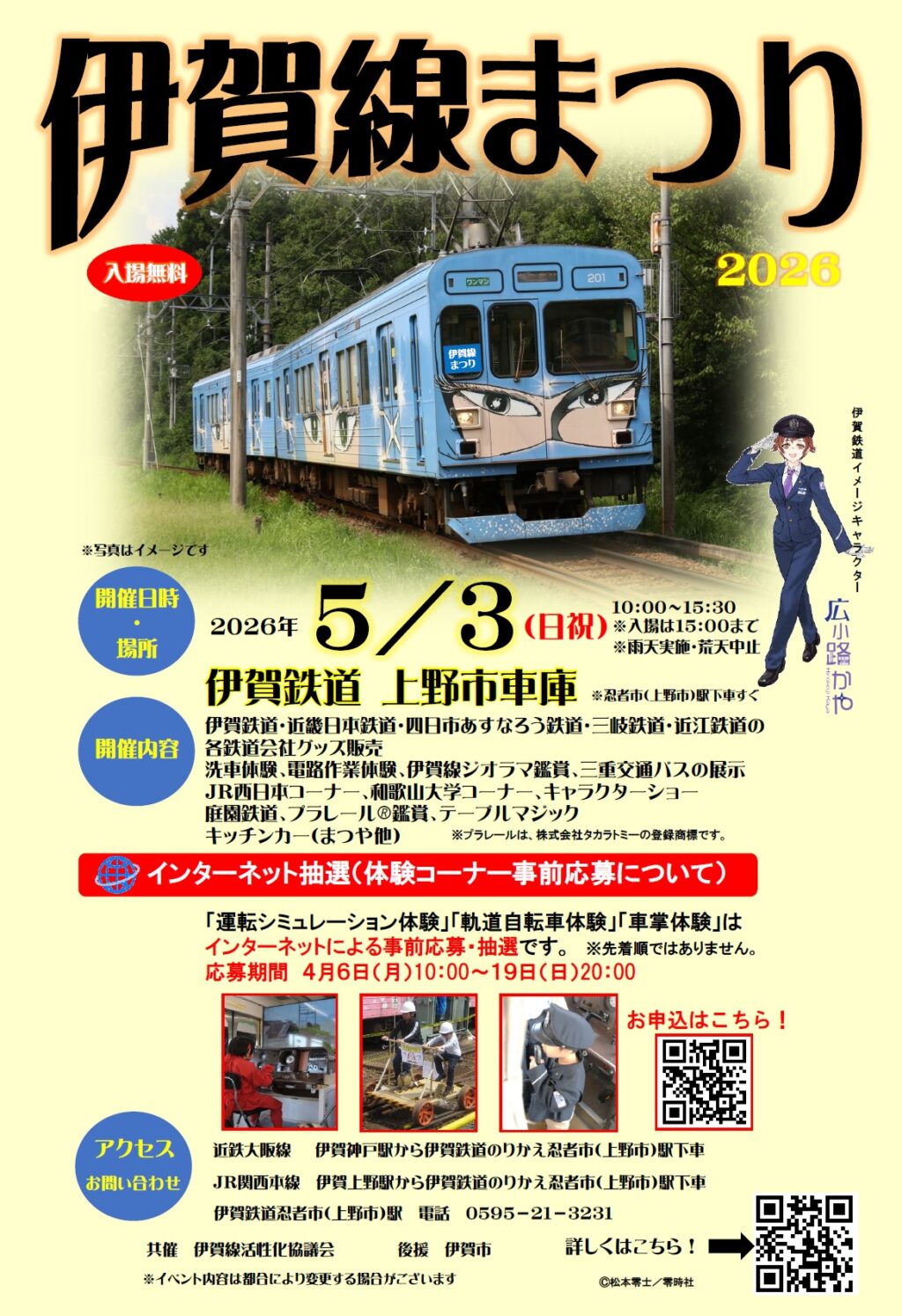 伊賀鉄道株式会社と、そのサポーターズクラブである伊賀鉄道友の会は、5月3日(日祝)、忍者市(上野市)駅下車すぐの上野市車庫にて『伊賀線まつり2026』を開催します。